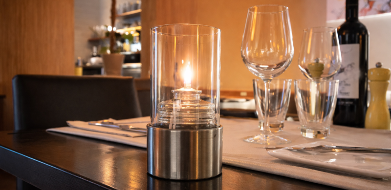 🛡️ Mejora la seguridad en tus mesas: la vela se encuentra completamente dentro del portavelas, lo que evita el contacto entre la llama y el cliente y previene cualquier quemadura desafortunada.